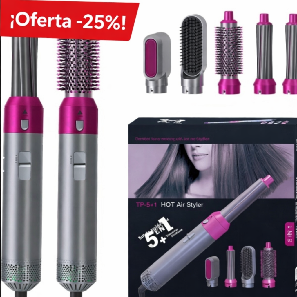 - 5 accesorios intercambiables para alisar, ondular, dar volumen, masajear y peinar
